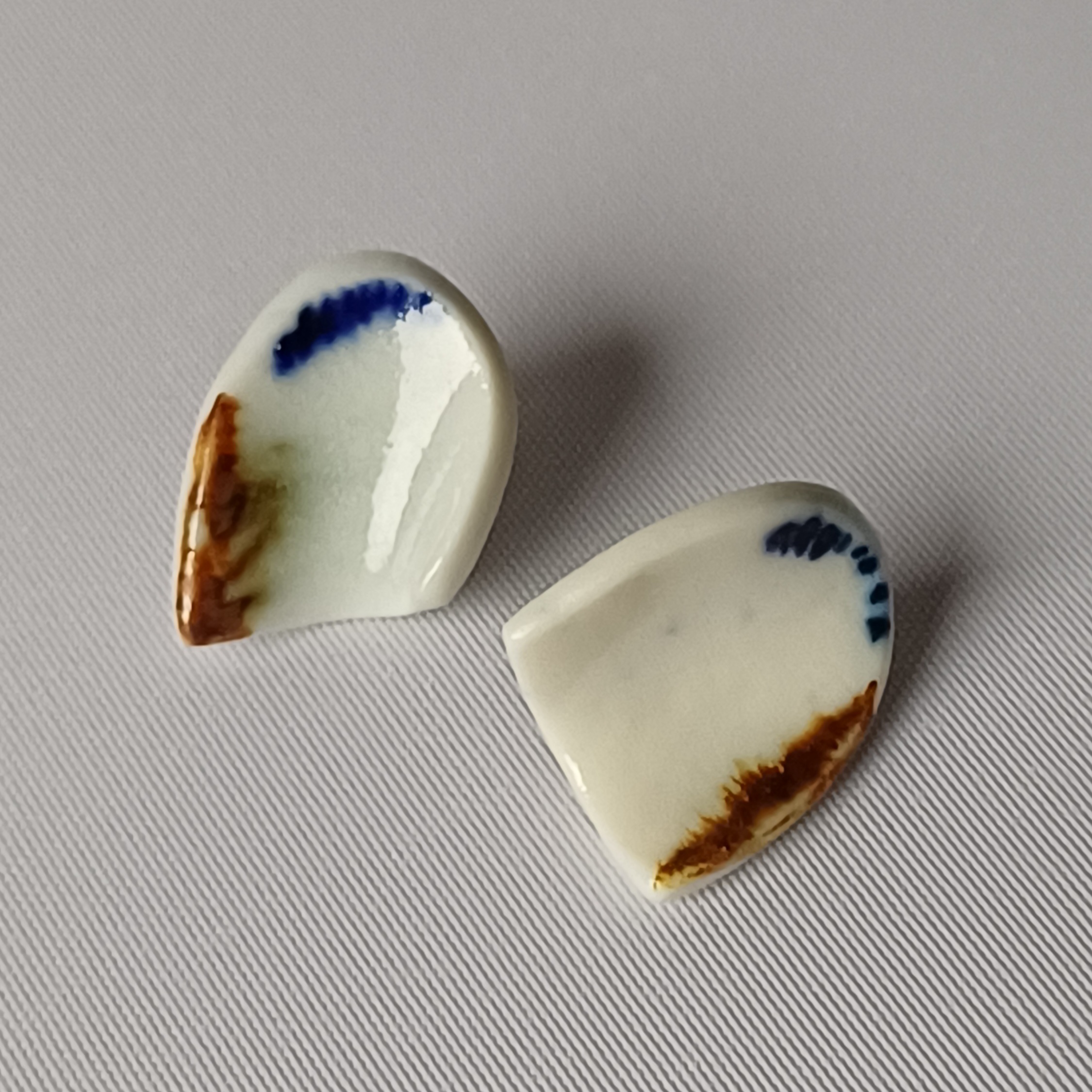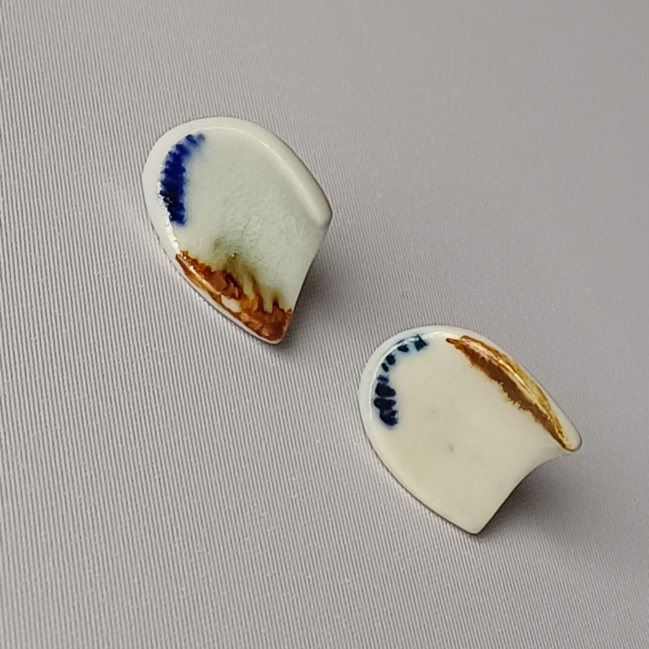 Parella desigual modelada i pintada a mà. Base i tanca de pressió de plata.