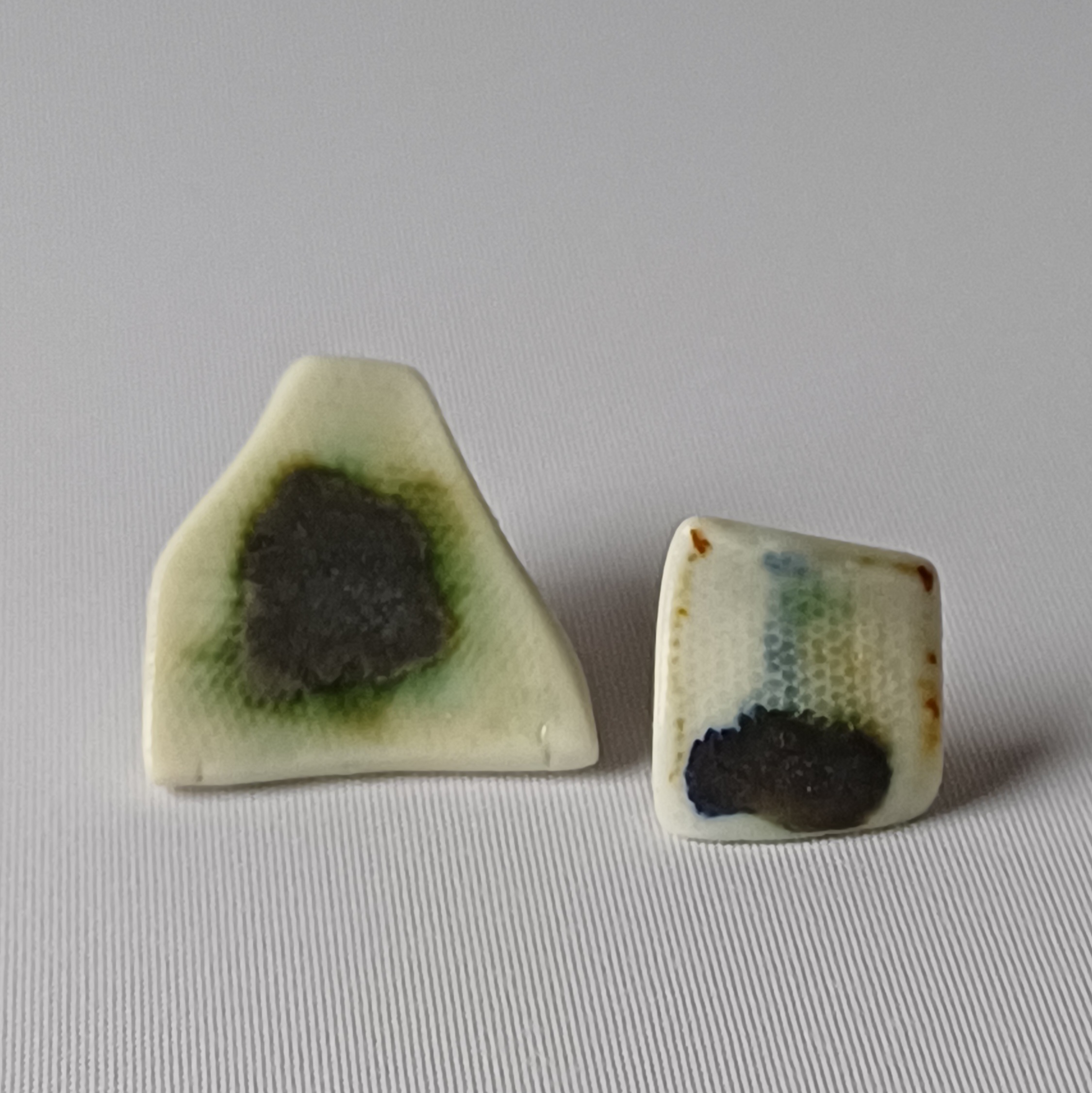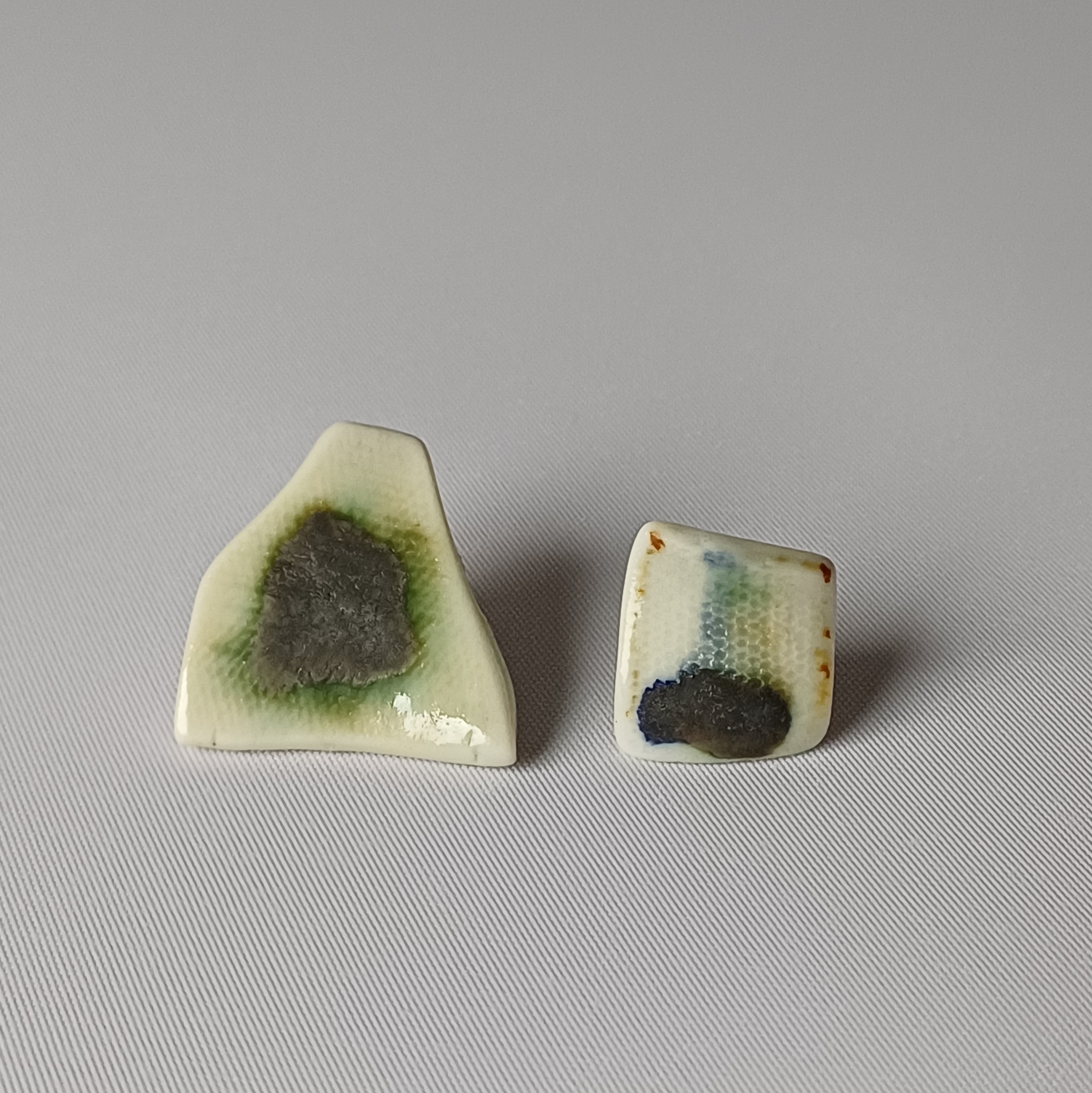 Parella desigual modelada i pintada a mà. Base i tanca de pressió de plata.