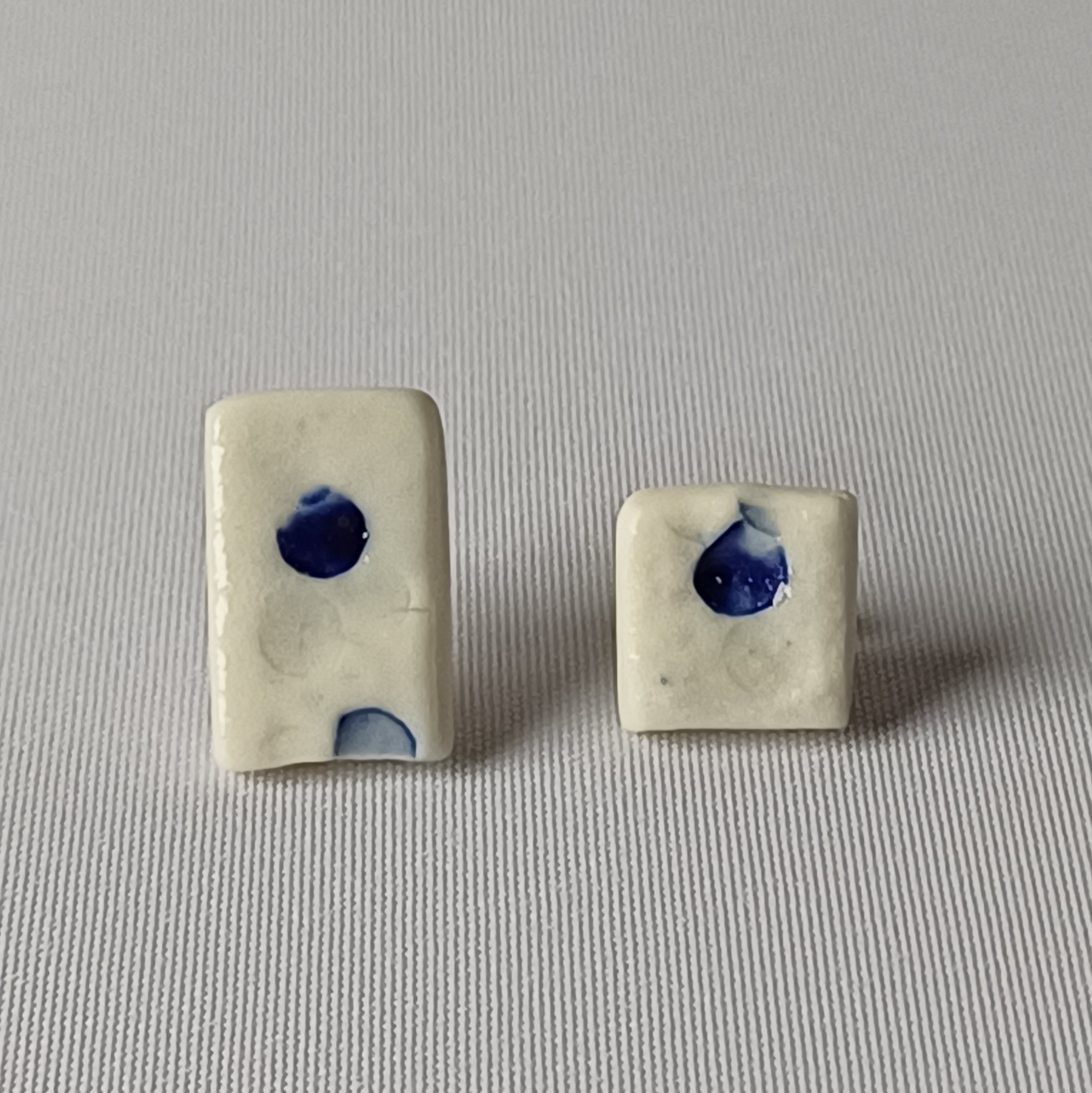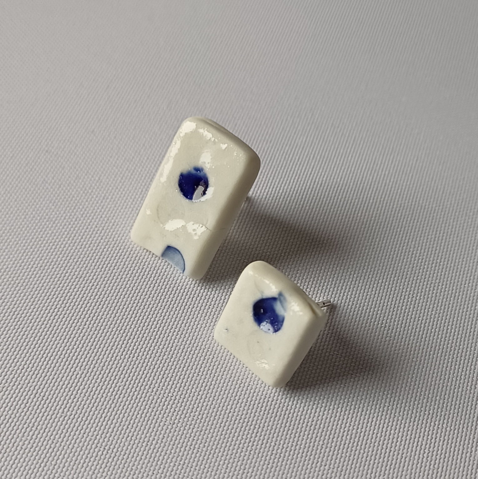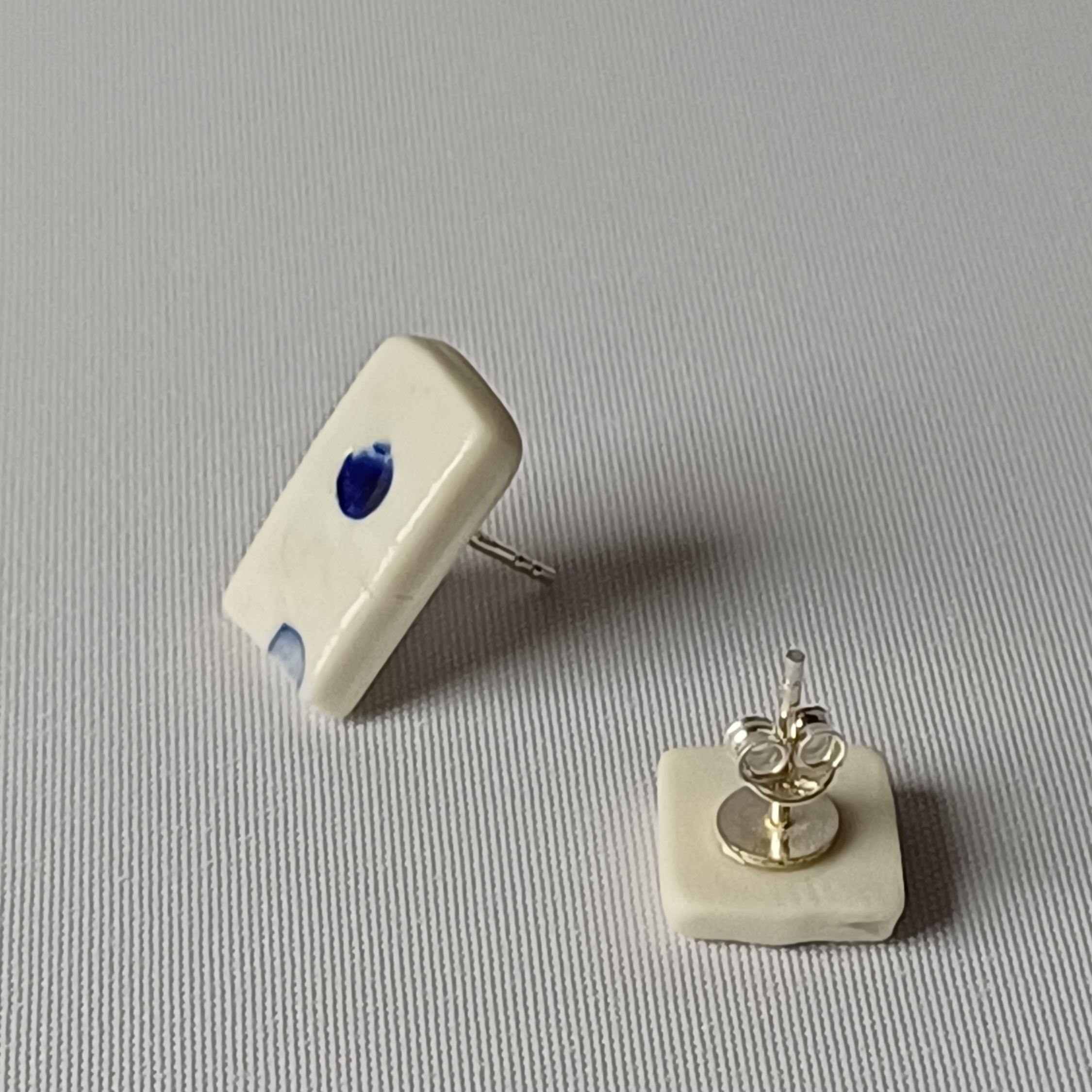Arracades desiguals de porcellana modelades i pintades a mà. Base i tanca de pressió de plata.