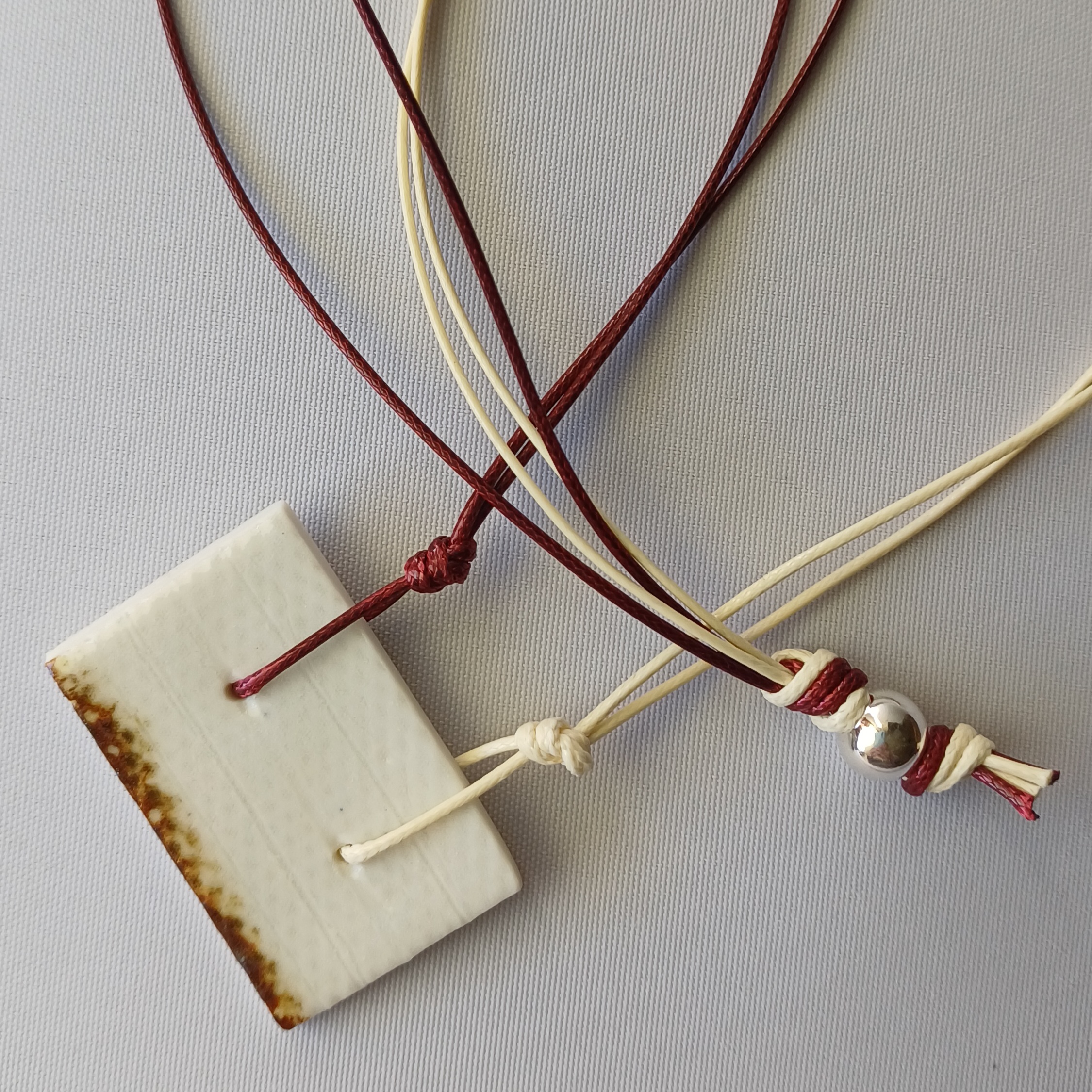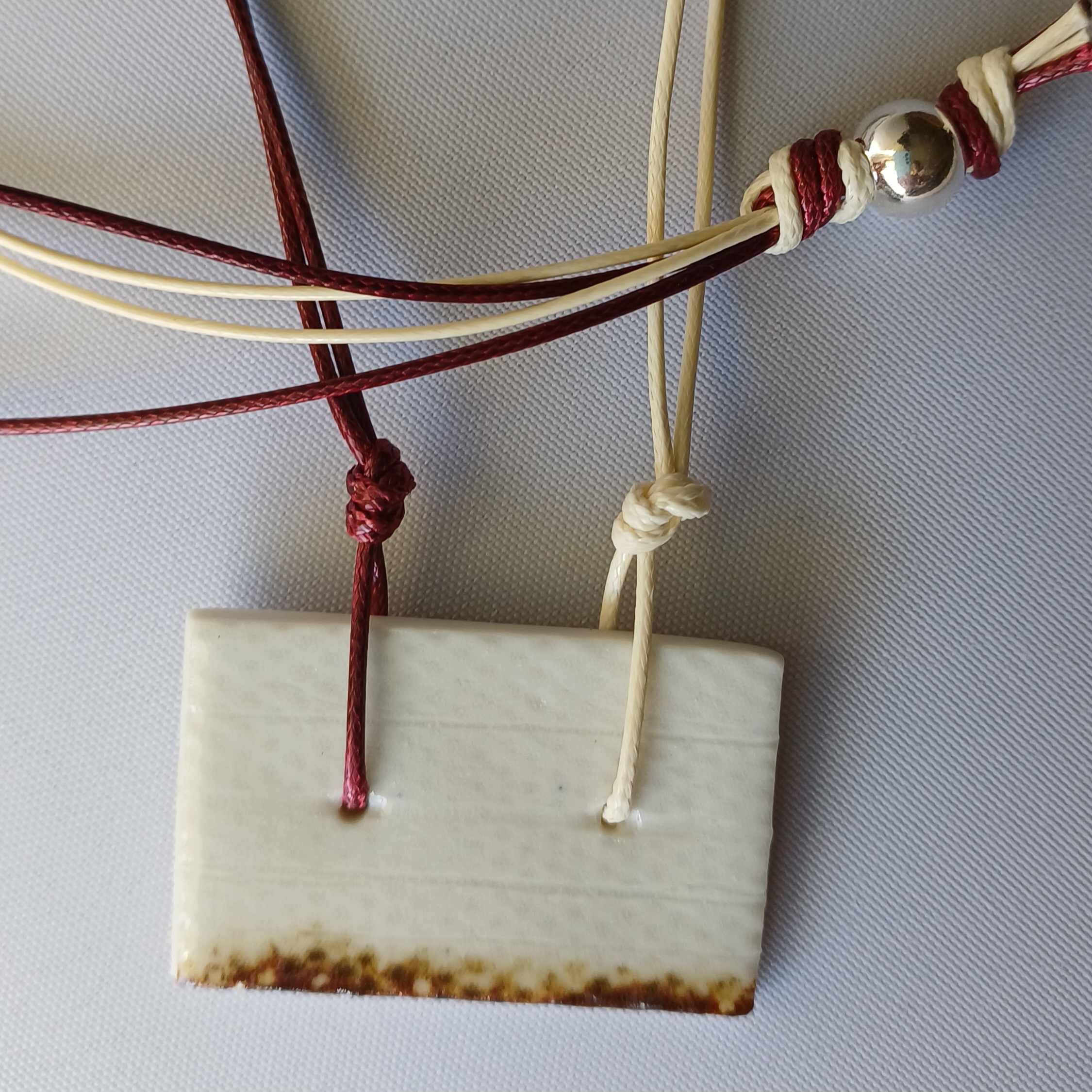 Figura modelada i pintada a mà, fil encerat i abalori de plata.